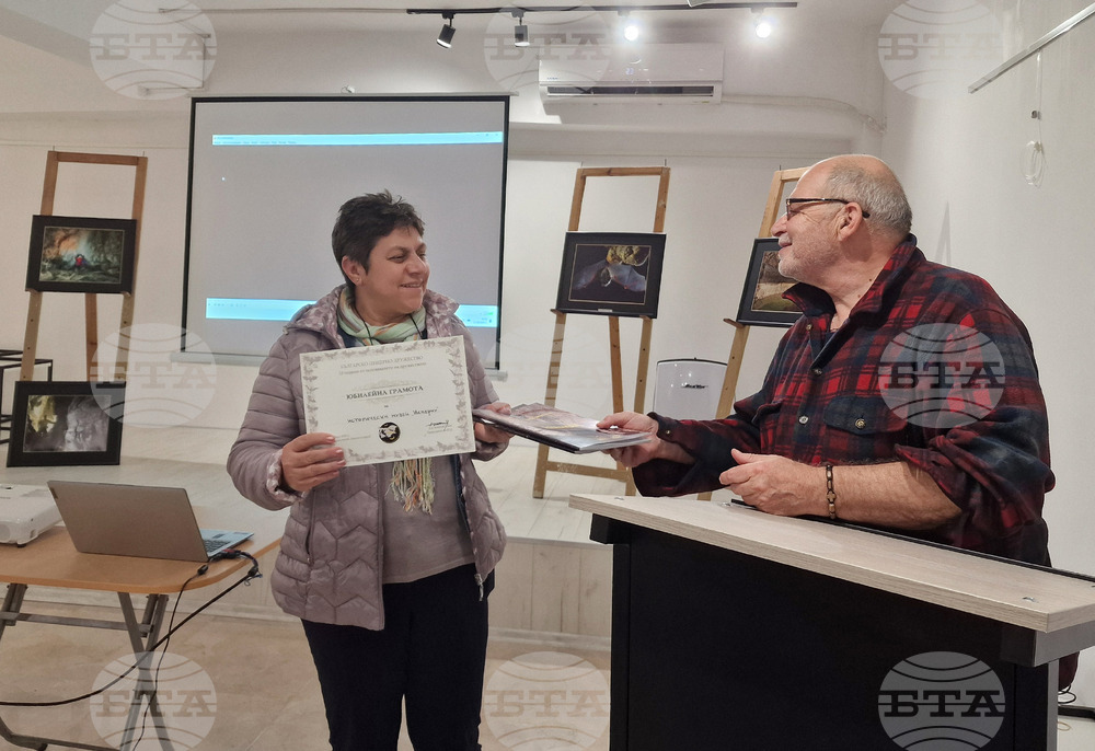 Исперих (17 октомври 2025) Нови открития и любопитни факти от теренните проучвания на пещерите в Археологическия резерват „Сборяново“ и Държавното ловно стопанство „Воден – Ири Хисар“ бяха представени на среща в Исперих. На снимката: почетният президент на Балканския спелеоложки съюз Алексей Жалов.