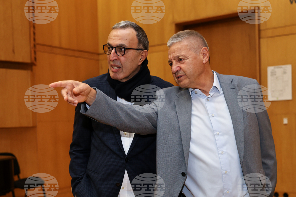 Пловдив (17 октомври 2025) В Първо студио на Българското национално радио - Радио Пловдив - на специална церемония се представя автобиографичната книга на легендарния български футболист Петър Зехтински. На снимката: капитанът на "Ботев Пловдив" Тодор Неделев и Петър Зехтински.