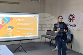 Плевен (20 октомври 2025) В Плевен младежи се срещнаха с представители на местната власт и представиха свои идеи. На снимката: главният секретар на Национален младежки форум Йоанна Пейчевска.