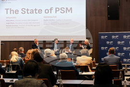 София (21 октомври 2025) Първи панел от Годишната конференция на Международната асоциация на обществените медии (Public Broadcasters International) на тема „Състоянието на обществените медии“ се провежда в зала „Васил Левски“ на хотел „Хаят Риджънси“. На снимката: генералният директор на Българското национално радио (БНР) Милен Митев.