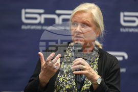 София (21 октомври 2025) Първи панел от Годишната конференция на Международната асоциация на обществените медии (Public Broadcasters International) на тема „Състоянието на обществените медии“ се провежда в зала „Васил Левски“ на хотел „Хаят Риджънси“. На снимката: председателят на управителния съвет в RTV SLO (Словения) Наталия Горшчак.