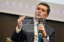 София (21 октомври 2025) Първи панел от Годишната конференция на Международната асоциация на обществените медии (Public Broadcasters International) на тема „Състоянието на обществените медии“ се провежда в зала „Васил Левски“ на хотел „Хаят Риджънси“. На снимката: управляващият директор на ABC (Австралия) Хю Маркс.