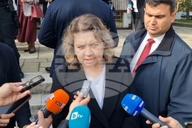 Кърджали (21 октомври 2025) Председателят на Народното събрание Наталия Киселова участва в тържествата по случай Деня на Кърджали - 21 октомври. На снимката: председателят на Народното събрание Наталия Киселова прави изявление пред медиите.