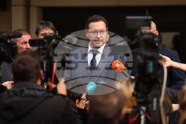 София (21 октомври 2025) Брифинг пред сградата на Министерство на вътрешните работи след среща на ръководството на МВР с висшия мениджмънт на столичните молове. На снимката: главният секретар на МВР Мирослав Рашков.