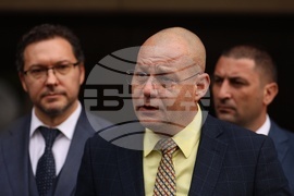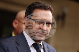 София (21 октомври 2025) Брифинг пред сградата на Министерство на вътрешните работи след среща на ръководството на МВР с висшия мениджмънт на столичните молове. На снимката: директорът на Главна дирекция „Национална полиция“ Захари Васков.