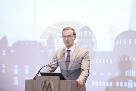 София (23 октомври 2025) Изпълнителната агенция за насърчаване на малките и средни предприятия (ИАНМСП) и Агенцията за чуждестранни инвестиции на Виетнам (FIA) организират днес бизнес форум "Възможности за бизнес сътрудничество между Република България и СР Виетнам". На снимката: На снимката: изпълнителният директор на ИАНМПС Бойко Таков.