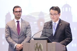 София (23 октомври 2025) Изпълнителната агенция за насърчаване на малките и средни предприятия (ИАНМСП) и Агенцията за чуждестранни инвестиции на Виетнам (FIA) организират днес бизнес форум "Възможности за бизнес сътрудничество между Република България и СР Виетнам". Церемония по размяна на Меморандум за разбирателство. На снимката: председателят на Българската търговско промишлена палата (БТПП) Цветан Симеонов и представител на Международен арбитражен център на Виетнам.