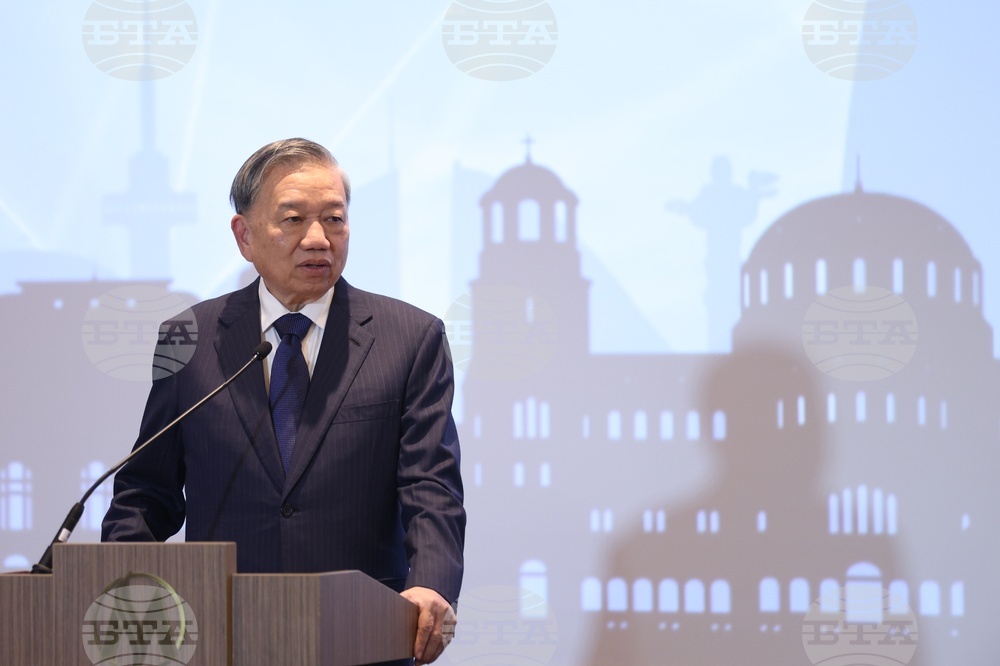София (23 октомври 2025) Изпълнителната агенция за насърчаване на малките и средни предприятия (ИАНМСП) и Агенцията за чуждестранни инвестиции на Виетнам (FIA) организират днес бизнес форум "Възможности за бизнес сътрудничество между Република България и СР Виетнам". На снимката: На снимката: генералният секретар на Виетнамската комунистическата партия То Лам.