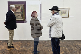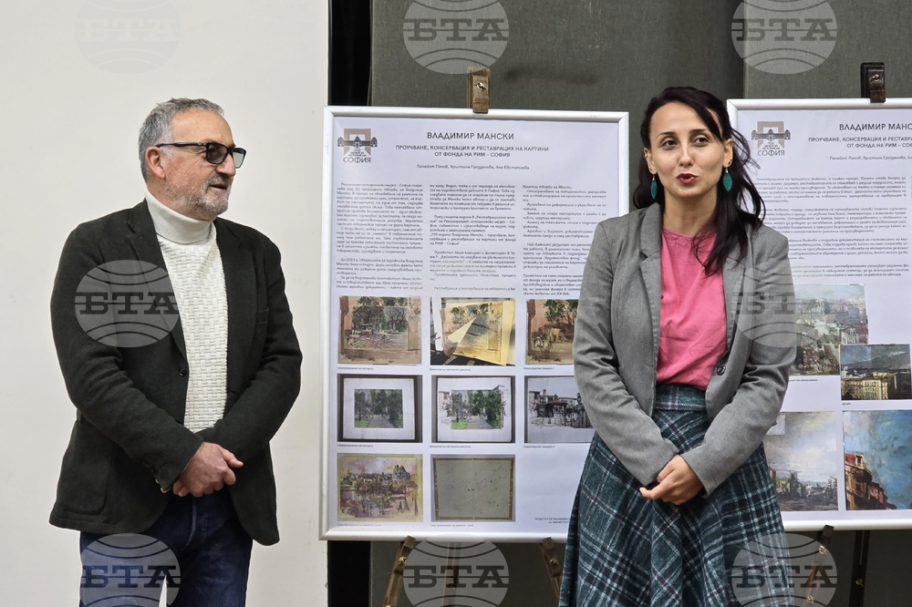 Видин (23 октомври 2025) Изложбата „110 години от рождението на Владимир Мански“ е подредена в Художествената галерия „Никола Петров“ във Видин. Тя е част от програмата за отбелязване на духовния празник на града - Димитровден. Експозицията е на Регионален исторически музей - София и е открита за Деня на София. На снимката: директорът на Художествена галерия - Видин Богдан Александров и изкуствоведът и куратор на изложбата Христина Грозданова.