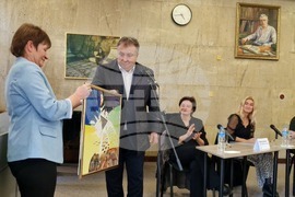 Шумен (23 октомври 2025) Честване на 70-годишния юбилей на Детския отдел на Регионална библиотека „Стилиян Чилингиров“ и начало на националния дискусионен форум „Работата с деца – изкуство и предизвикателство“. На снимката: директорът на Регионална библиотека "Стилиян Чилингиров" д-р Росица Добрева (вляво).