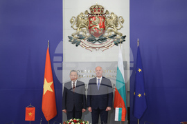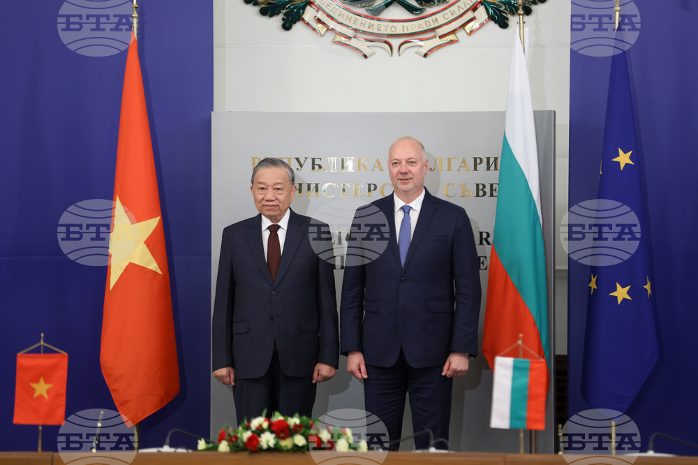 София (24 октомври 2025) Премиерът Росен Желязков (вдясно) се среща с генералния секретар на Виетнамската комунистическата партия То Лам (вторият от ляво надясно) в Министерски съвет. На снимката: Меморандум за разбирателство и приятелско сътрудничество между Областна администрация - Перник, Република България и Народния комитет на провинция Фу Тхо, Социалистическа република Виетнам - от българска страна подписва областният управител на област Перник Людмил Веселинов, от виетнамска страна подписва партийният секретар на провинция Фу Тхо Чъонг Куок Хюи.