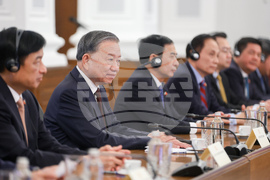 София (24 октомври 2025) Премиерът Росен Желязков (вдясно) се среща с генералния секретар на Виетнамската комунистическата партия То Лам (вторият от ляво надясно) в Министерски съвет. На снимката: Изменение и допълнение на Споразумението между правителството на Република България и правителството на Социалистическа република Виетнам за взаимно освобождаване от изискванията за притежаване на визи на притежателите на дипломатически и служебни паспорти, ще бъде осъществено чрез размяна на ноти - от българска страна разменя министърът на външните работи Георг Георгиев (вторият от дясно наляво), от виетнамска страна разменя и. д. министър на външните работи Ле Хоай Чунг (вляво).
