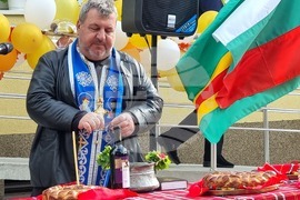 Болярово (24 октомври 2025) Министърът на регионалното развитие и благоустройството Иван Иванов и кметът на Община Болярово Христо Христов откриват обновената административна сграда на крайграничната община в Ямболска област. В приложените мерки за енергийна ефективност са инвестирани 531 000 лева по Националния план за възстановяване и устойчивост (НПВУ). На снимката: ставрофорен свещеноиконом Николай Клюнков, архиерейски наместник на Тополовградската духовна околия.
