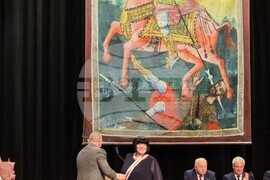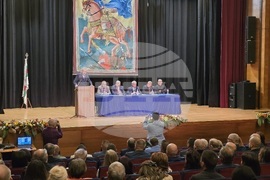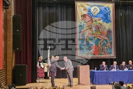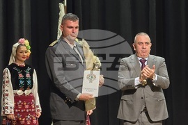 Сливен (24 октомври 2025) В навечерието на Димитровден в Сливен се провежда тържествено заседание на Общинския съвет, по време на което се връчват отличия на заслужили граждани. Званието „Почетен гражданин на град Сливен и Общината“ получава д-р Росица Петрова-Василева. Със „Знак за граждански принос“ на Общински съвет – Сливен се отличават комисар Денчо Чомаков и главен инспектор Росен Георгиев от Регионалната дирекция „Пожарна безопасност и защита на населението“. На събитието присъства кметът на града Стефан Радев (вдясно).