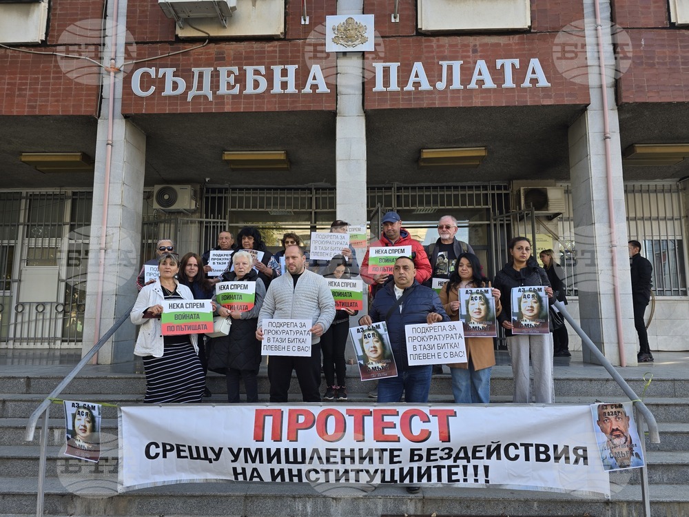 site.btaВ Плевен граждани протестираха пред Съдебната палата с искане за справедливост по дело за катастрофа с две жертви