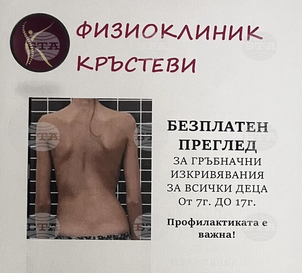 БТА, Разград (21 октомври 2025) Безплатен скрининг за ранна диагностика на гръбначни изкривявания при деца ще има в Разград. Афиш: МБАЛ - Разград