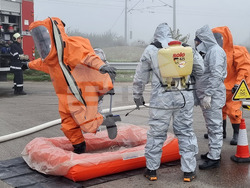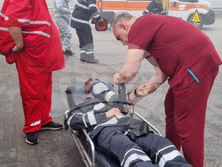Разлив на сярна киселите от катастрофирал камион с цистерна край Варна овладяха по време на учение представители на различни институции. Директорът на Регионалната дирекция „Пожарна безопасност и защита на населението“ в крайморския град старши комисар Стоян Стоянов каза, че по сценарий тежката машина, превозваща химическото вещество, е самокатастрофирала. При инцидента цистерната се е пробила и е изтекла киселина на пътя. Шофьорът е пострадал и е заклещен в кабината на камиона.