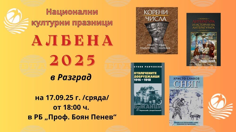 Разград ще е първият град, в който ще се спрат за среща с читатели пътуващите Национални културни празници "Албена 2025", съобщи за БТА директорът на Регионалната библиотека "Проф. Боян Пенев" Димитър Петров.