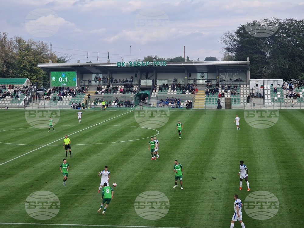 В средата на първата част гостите от Русе имаха още три възможности за попадение, но вратарят Мартин Янков спаси. За Хебър имаше един шанс в тези минути, пропуснат от Иван Дишков, чийто удар с глава беше спасен от опитния Георги Китанов.