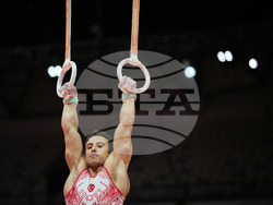 На първите три финала при мъжете Джейк Джарман (Великобритания) триумфира на земя с 14.866 точки, на халки първи е Донъл Уитънбърг (САЩ) с 14.700, а на кон с гривни най-добър беше Янмин Хун (Китай) с 14.600.