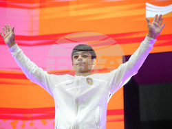 19-годишният дебютант Хун изненада със златото в оспорвания финал, в който участваха сребърният олимпийски медалист Нариман Курбанов (Казахстан) и европейският шампион Хамлет Манукян (Армения). И двамата имаха проблеми в съчетанията си, разчиствайки пътя за други като Манукян Мамикон Хачатрян (Армения), който спечели сребро при дебюта си на шампионат на планетата.