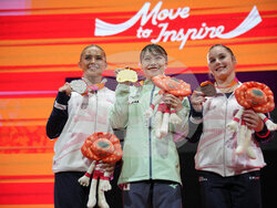 На финалите при жените китайката Цинин Чжан триумфира на греда с 15.166, а на земя златото взе японката Аико Сугихара с 13.833 точки.