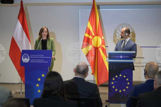 Квалифицирано мнозинство за междинните стъпки в преговорите с ЕС предложи в Скопие австрийският министър по европейските въпроси Клаудия Плаколм