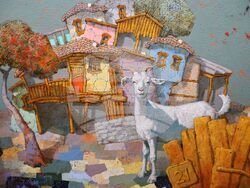 Another common image in his paintings are goats. "If you compare a goat and a sheep, a sheep doesn't have its own opinion and character, while a goat does whatever it decides. You can't discipline it, rather it can discipline you. That's why I like them so much and accordingly I paint them often," he said.