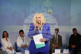 София (24 май 2025) Национален дарителски фонд (НФД) „13 века България“ връчва традиционната награда за принос в разпространението на българската култура от българоезична медия в чужбина. Събитието се провежда в Мултимедиен център зала „МаксиМ“, по време на Двадесетата Световна среща на българските медии, организирана от Българската телеграфна агенция (БТА). На снимката: отличието получава главният редактор на електронното издание „БГ Фактор“ в Кипър Живка Милова.