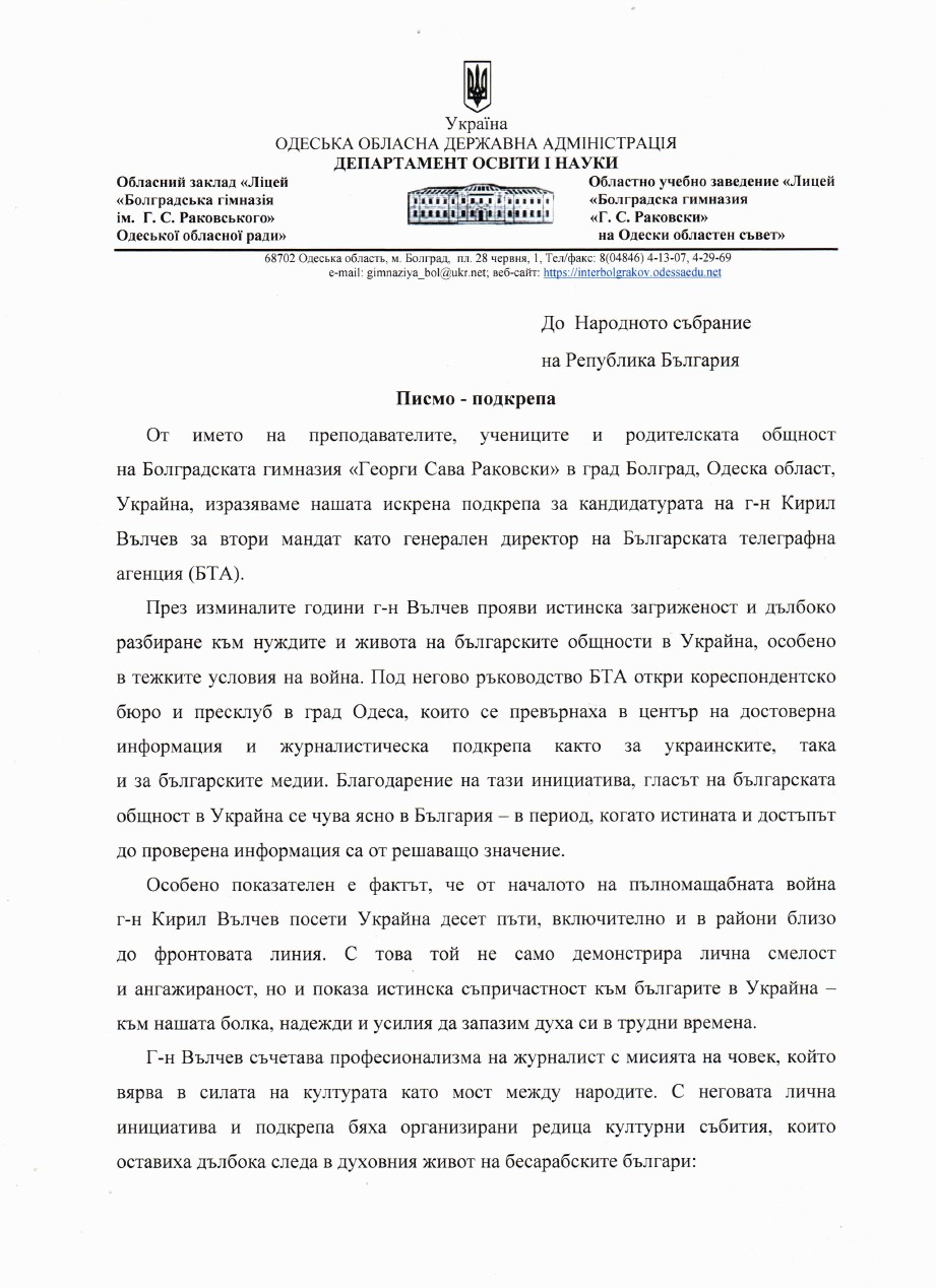site.btaБолградска гимназия „Георги Стойков Раковски“ – гр. Болград, Украйна