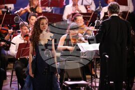 Созопол (29 август 2024) В Летния амфитеатър се изпълнява Симфоничен концерт на оркестъра на Българското национално радио. Диригент е Константин Илиевски, а солист е мецосопранът Светлина Стоянова (на снимката). Събитието е част от програмата по откриването на Празниците на изкуствата „Аполония“ 2024.