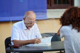 Созопол (2 септември 2024) В двора на Художествената галерия на Стария Созопол проф. д-р Кирил Топалов представя книгата си - мемоарен роман "Живот по неизбежност". Събитието е част от литературната програма на Празниците на изкуствата "Аполония" 2024.