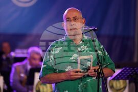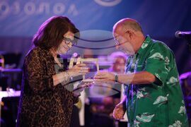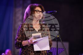 Созопол (3 септември 2024) В Амфитеатър "Аполония" генералният секретар на Българската асоциация на работодателите в областта на културата (БАРОК) проф. д-р Момчил Георгиев връчва награда "ПроКултура" 2023-2024 (в категория "Фестивал") на Празниците на изкуствата "Аполония", в лицето на директора на Фондация "Аполония" Маргарита Димитрова (на снимката). В периода от 28 август до 7 септември в Созопол се провежда 40-ото юбилейно издание на Празниците на изкуствата "Аполония".