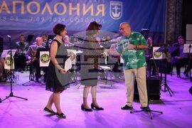 Созопол (3 септември 2024) В Амфитеатър "Аполония" генералният секретар на Българската асоциация на работодателите в областта на културата (БАРОК) проф. д-р Момчил Георгиев (вдясно) връчва награда "ПроКултура" 2023-2024 (в категория "Фестивал") на Празниците на изкуствата "Аполония", в лицето на директора на Фондация "Аполония" Маргарита Димитрова (втора вляво). В периода от 28 август до 7 септември в Созопол се провежда 40-ото юбилейно издание на Празниците на изкуствата "Аполония".