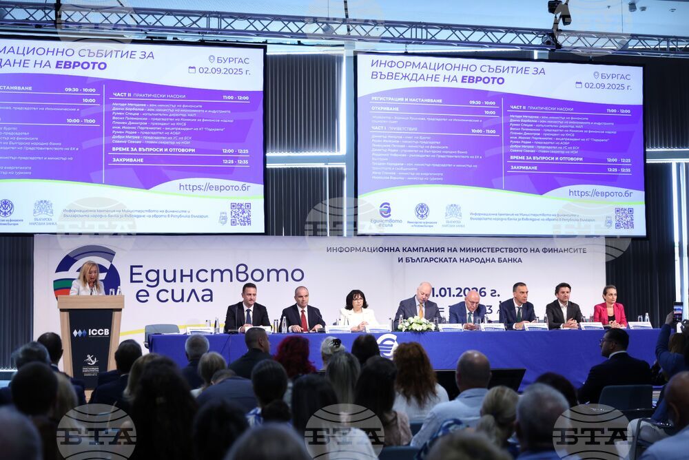 Националната информационна кампания за въвеждане на еврото в България беше открита в Бургас. Представители на правителството, Българската народна банка, държавни институции, местните власти, социални партньори и Европейската комисия подчертаха значението на плавния и прозрачен преход към единната валута. Министри и експерти акцентираха върху икономическите ползи от членството в еврозоната от 1 януари 2026 г. - стабилност на цените, защита на спестяванията, достъп до инвестиции, конкурентоспособност на бизнеса и улеснена търговия на вътрешния и европейския пазар.