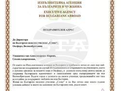 От екипа му добавят, че училището в Оксфорд е получило по случай годишнината и почетна грамота, и поздравителен адрес от Райна Манджукова, изпълнителен директор на ИАБЧ.