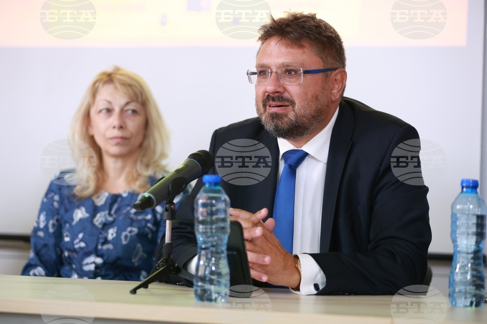 Велико Търново (23 Септември 2025) Националният хакатон „Популяризиране на политиката на сближаване на ЕС“ се провежда във Великотърновския университет. Организатор на събитието е Българската телеграфна агенция. В състезанието участват седем отбора от цялата страна. Това са отборите на Бургаския свободен университет, на Русенския университет, на Техническия университет в Габрово, Икономическия университет във Варна, Университета по хранителни технологии в Пловдив, Югозападния университет от Благоевград и Великотърновския университет "Св.св. Кирил и Методий". На снимките (от ляво надясно): генералният директор на „Арменпрес“ Нарине Назарян, Доц. Боряна Здравкова и генералният директор на БТА Кирил Вълчев