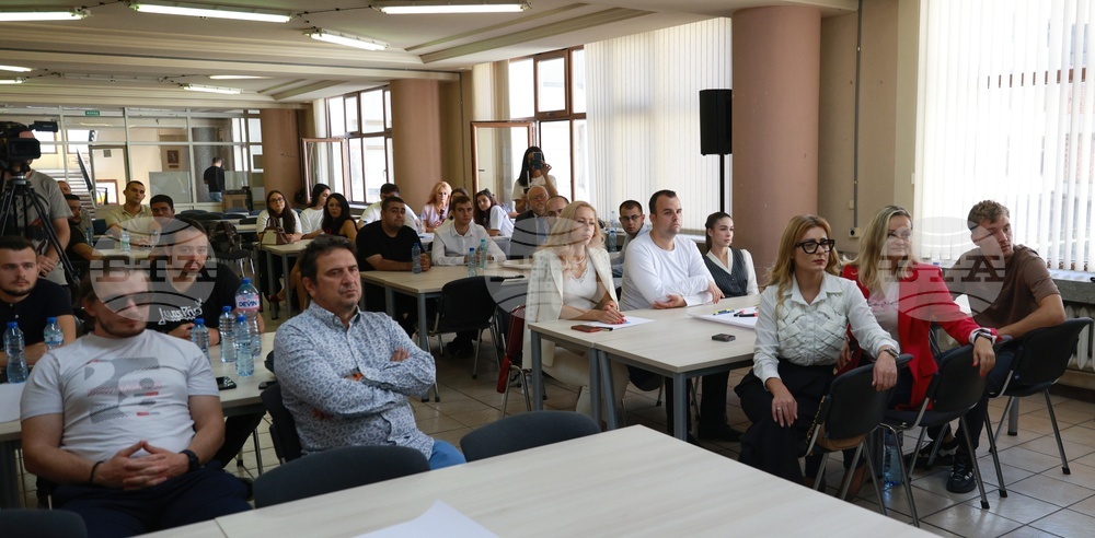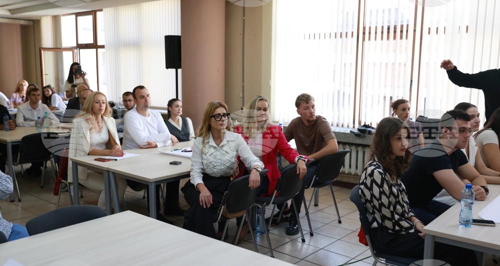 Велико Търново (23 Септември 2025) Националният хакатон „Популяризиране на политиката на сближаване на ЕС“ се провежда във Великотърновския университет. Организатор на събитието е Българската телеграфна агенция. В състезанието участват седем отбора от цялата страна. Това са отборите на Бургаския свободен университет, на Русенския университет, на Техническия университет в Габрово, Икономическия университет във Варна, Университета по хранителни технологии в Пловдив, Югозападния университет от Благоевград и Великотърновския университет "Св.св. Кирил и Методий". На снимките: генералният директор на „Арменпрес“ Нарине Назарян (втора вляво), Доц. Боряна Здравкова (в средата) и генералният директор на БТА Кирил Вълчев (вдясно).