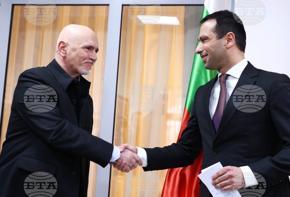 Скопие (11 февруари 2022) Смесената правителствена делегация от България и Северна Македония пристигна на летището в Скопие с първия директен полет от възобновената въздушна линия, която скоро се очаква отново да свързва двете столици. След проведените двустранни политически и бизнес срещи между делегациите, в които участват и представители на туристическия бизнес се състоя пресконференция. На снимката: министърът на транспорта и съобщенията на България - Николай Събев (ляво) и министърът на транспорта и съобщенията на Република Северна Македония - Благой Бочварски. Пресфото-БТА снимка: Минко Чернев (ПК)