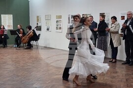 Видин (14 ноември 2022) Днес в Художествена галерия „Никола Петров“ бе открита изложбата „Аржентина и България: 90 години приятелство“, посветена на 90-годишнината от установяването на дипломатически отношения между двете държави. Тя бе официално открита от кмета на Община Видин д-р Цветан Ценков и посланика на Република Аржентина в България Негово Превъзходителство Алфредо Атанасоф. Изложбата чрез снимки и документи, разказва за събитията от политически, икономически и културен характер, случили се през деветте десетилетия на контакти между България и Аржентина. Експозицията свидетелства за значимостта на присъствието на българските емигранти в Аржентина преди и след установяването на дипломатически отношения. Изложбата може да бъде видяна до 19 ноември. БТА е медиен партньор на документалната изложба. Аржентинско танго изпълниха камерен състав на Симфониета -Видин и представители на клуба по танци "Елит". Пресфото БТА снимка: Ирена Данаилова (ЕД)