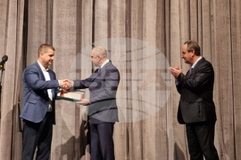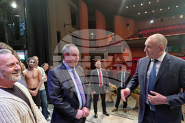 Стара Загора (17 ноември 2022) В Стара Загора тази вечер президентът Румен Радев (в средата), кметът Живко Тодоров (ляво) и директорът на Старозагорската опера Огнян Драганов откриха 52 то издание на Фестивала на оперното и балетното изкуство (ФОБИ). Кметът на Стара Загора връчи на Румен Радев почетния знак на Стара Загора в знак на благодарност за помощта за развитието на града. Пресфото-БТА снимка: Румяна Лечева (ЕД)