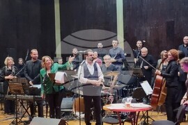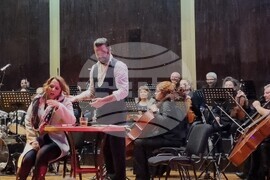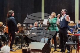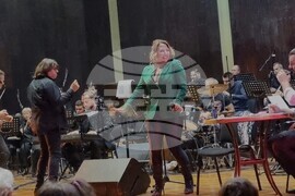 Видин (19 ноември 2022) Актрисата Милица Гладнишка влезе в ролята на певица и получи заслужени аплодисменти от видинската публика. На сцена „Филхармония“ във Видин Гладнишка, Иван Велчев и Симфониета -Видин пренесоха публиката в музикалния свят на Европа и Америка. В препълнената зала те изнесоха вълнуващ концерт „Някъде накрай света“. Диригент бе маестро Левон Манукян, дело на когото са оркестрациите на програмата. „ Някъде накрай света“ е музикална програма по идея на Юлия Манукян, която с вълнение проследи концерта. Пресфото-БТА снимка: Ирена Данаилова (ЕД)