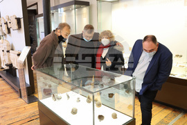 София (15 февруари 2022) За петнадесета поредна година Националният археологически институт с музей при БАН, с подкрепата на още 20 музея, организира временна изложба "Българска археология". Експозицията представя най-интересните и впечатляващи открития и проучвания от изминалия активен археологически сезон. Сред експонатите са златни, сребърни и бронзови украшения, изящни керамични антропоморфни фигури и съдове, колективни находки от сребърни и бронзови монети, сечива и оръжия, и много други. Включени са 40 обекта, илюстриращи развитието на културите в днешните български земи от палеолита (над 100000 години преди наше време) до Средновековието. Изложбата "Българска археология 2021" може да бъде посетена в Централна зала на НАИМ-БАН от 16 февруари. Пресфото-БТА снимка: Владимир Шоков (ПБ)