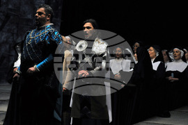 Бургас (15 февруари 2022) Тази вечер на сцената на Държавна опера - Бургас е премиерата на „Трубадур” - една от най-популярните опери на Джузепе Верди. Участват Делян Славов, Даниел Дамянов, Йоана Железчева, Даниела Дякова, Марян Йовановски и хора на операта под палката на маестро Иван Кожухаров. Пресфото-БТА снимка: Тодор Ставрев (ПБ)