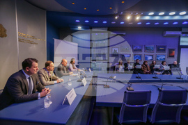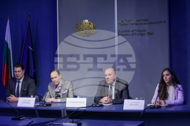 София (15 декември 2022) Пресконференция по актуални въпроси на министъра на външните работи Николай Милков. На снимката: от ляво надясно - Желязко Радуков, Костадин Коджабашев, Николай Милков, Хелия Иванова.