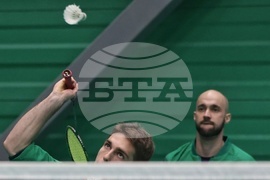 София (15 декември 2022) В зала "Европа" се провежда Европейската квалификация по бадминтон за смесени отбори. На снимката: Илиян Стойнов и Иван Русев (дясно). Пресфото-БТА снимка: Владимир Шоков(ЕД)