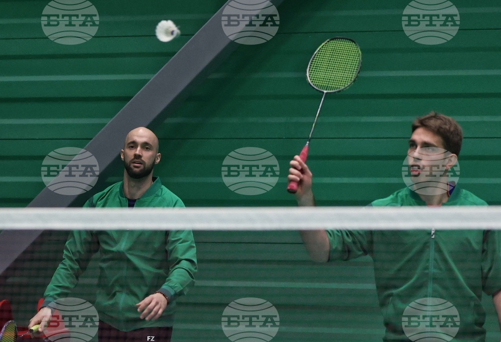 София (15 декември 2022) В зала "Европа" се провежда Европейската квалификация по бадминтон за смесени отбори. На снимката: Илиян Стойнов и Иван Русев (ляво). Пресфото-БТА снимка: Владимир Шоков(ЕД)