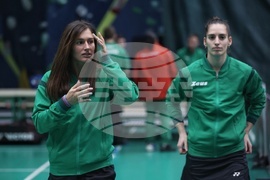 София (15 декември 2022) В зала "Европа" се провежда Европейската квалификация по бадминтон за смесени отбори. На снимката: Стефани Стоева и Калояна Налбантова (дясно). Пресфото-БТА снимка: Владимир Шоков(ЕД)