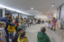 Габрово (15 декември 2022) Тази вечер с изложба бе отбелязана 16 годишнината на Детска школа за приложно изкуство „Ива Пенчева“. Присъства областният управител Кристина Сидорова, децата рисували за изложбата, техните родители и граждани. Събитието се състоя в зала „Възраждане“ в Габрово. Освен рисунките на децата в експозицията са подредени и картини рисувани на коприна. Пресфото-БТА снимка: Радослав Първанов (ЕД)