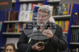 София (15 декември 2022) Престижната награда за нова българска проза „Хеликон“ бе връчена на официална церемония тази вечер. Носител е Костадин Костадинов (на снимката) за романа му „Ловецът на пеперуди“, (изд. „Хермес“). За наградата - паричен приз и пластика на бронзов орел - дело на скулптора и писател Евгений Кузманов се бориха 12 книги. Победителят бе обявен в книжарница „Хеликон Витоша“. Пресфото - БТА снимка: Цветомир Петров (ЕД)
